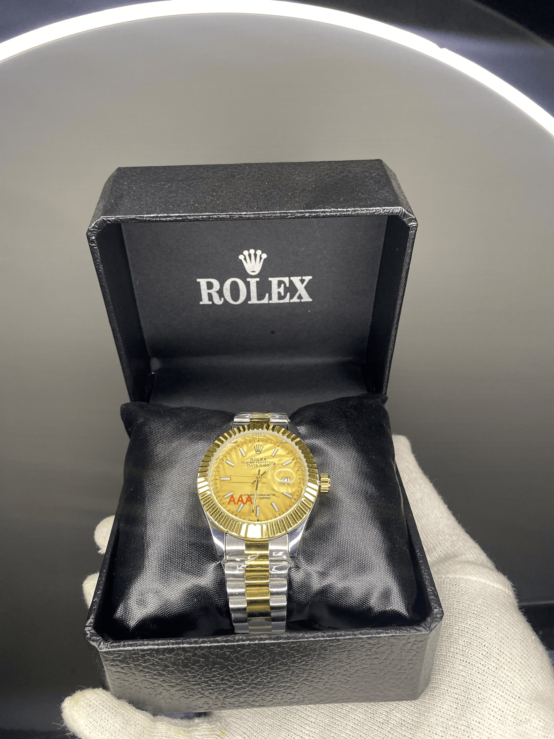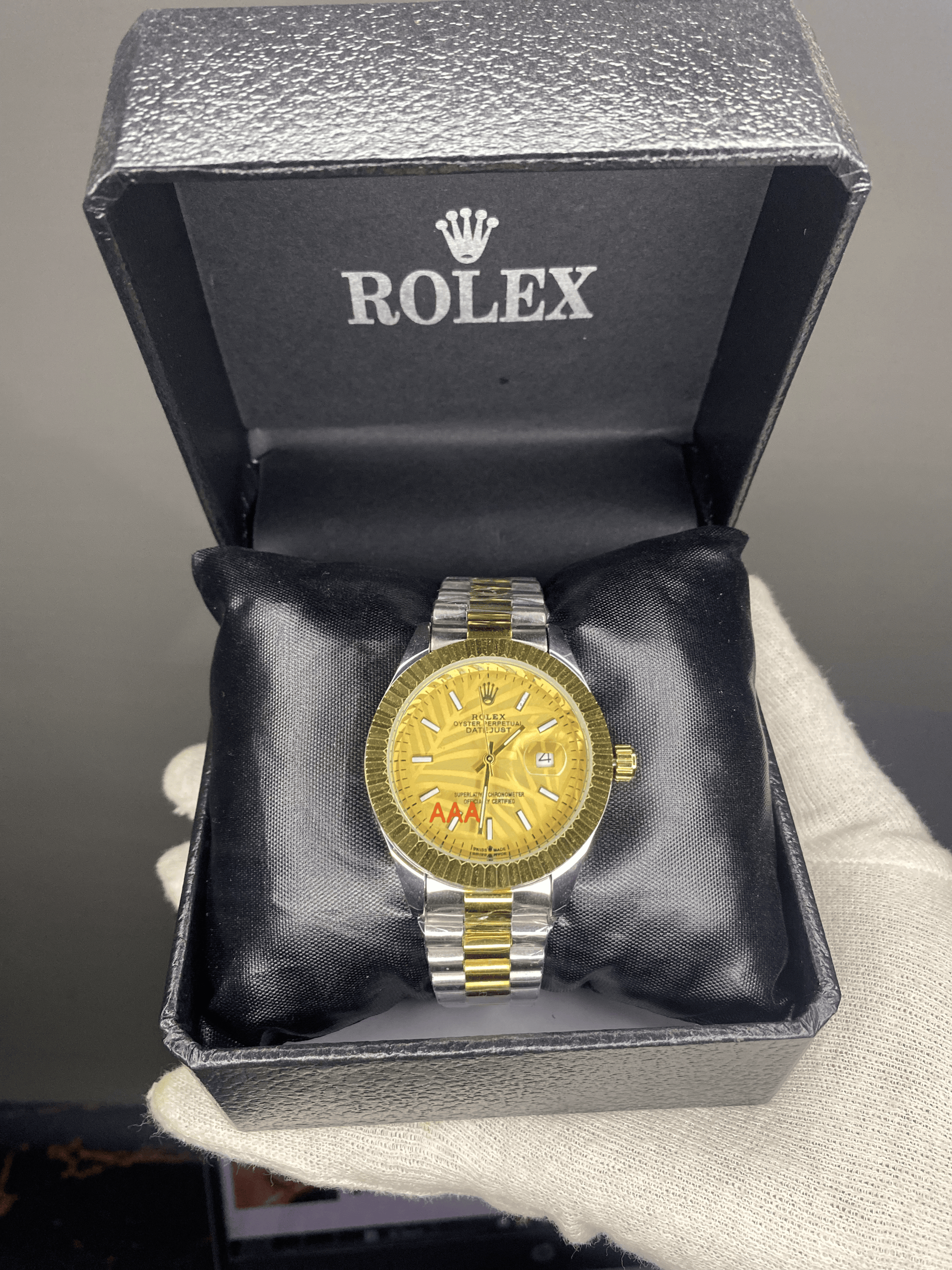 Exude luxury with this two-tone Rolex, featuring a radiant gold dial and classic design. The perfect blend of style and precision for those who appreciate timeless elegance and impeccable craftsmanship.